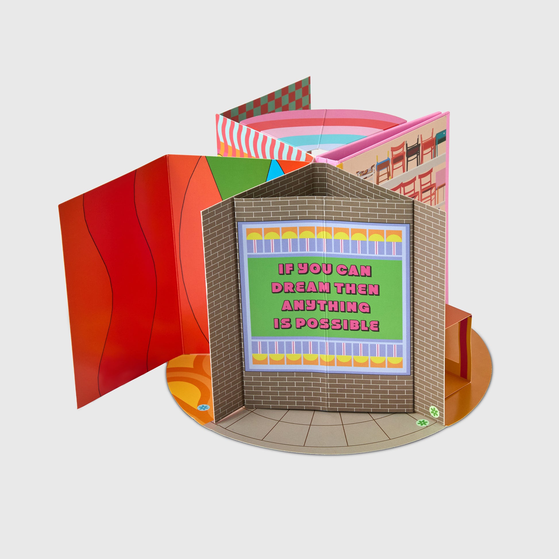Dreaming in Space is a pop-up artist’s book by Yinka Ilori, inviting readers of all ages to reimagine the spaces they inhabit and the possibilities within them.