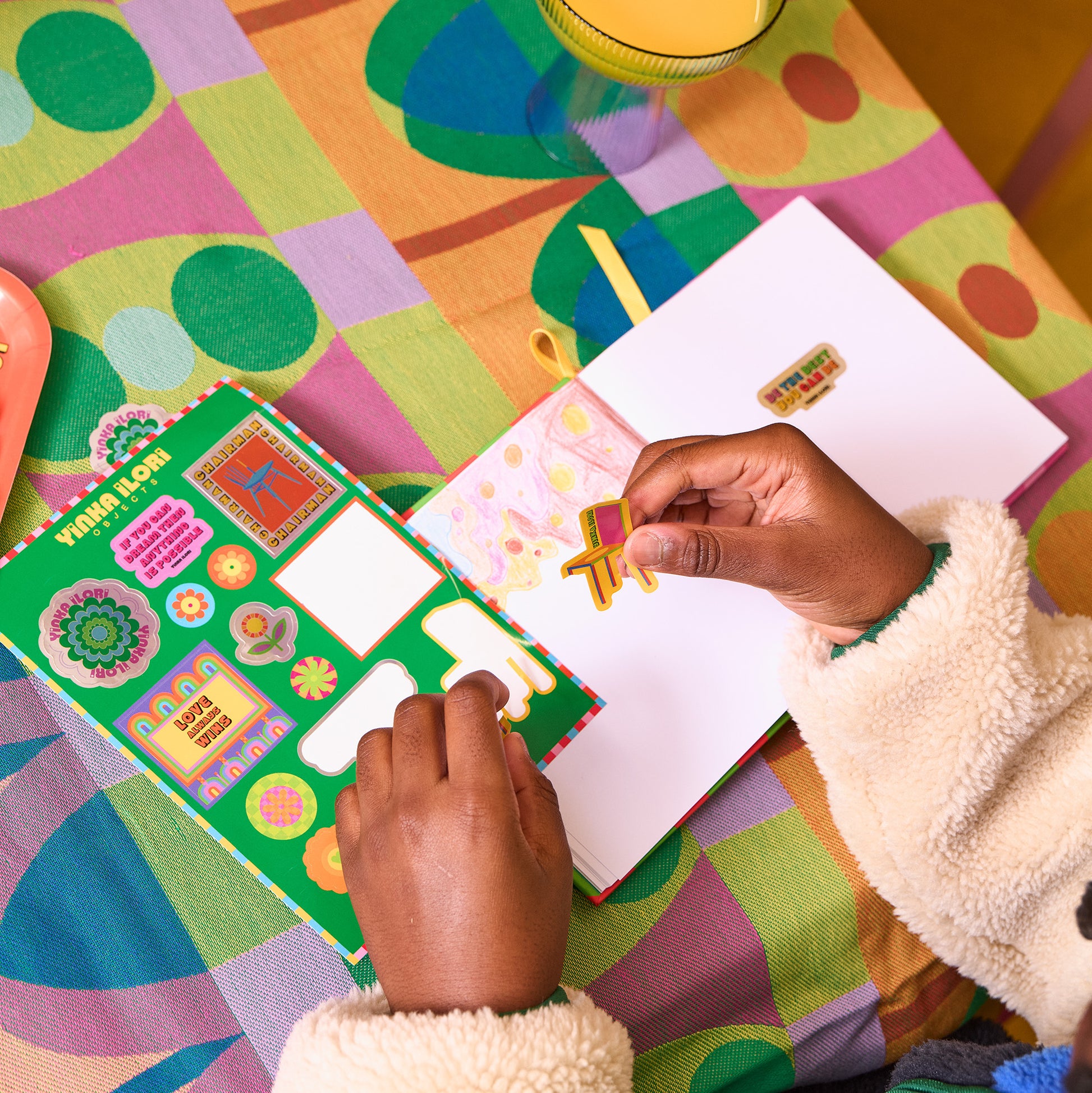 This colourful sticker set reimagines Yinka Ilori’s artworks as joyful designs that invite you to personalise your world with pattern and positivity. From radiant florals to uplifting affirmations, each sticker is a reminder that even the smallest details can carry meaning.